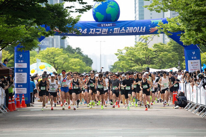 | ▲ 2024 지구런 마라톤 행사 참여자들이 출발신호와 함께 달리고 있는 모습 |