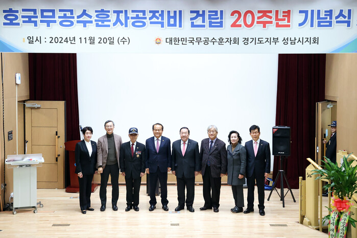 [성남=오왕석 기자] 성남시의회 이덕수 의장이 20일 수정구 보건소 대강당에서 열린 호국무공수훈자공적비 건립 20주년 기념식에 참석했다.