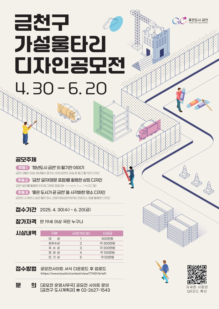 [시민일보 = 여영준 기자] 금천구(구청장 유성훈)는 오는 6월20일까지 공사장 가설울타리에 금천구의 특색을 반영하는 ‘공사장 가설울타리 디자인 공모전’을 진행한다고 밝혔다.