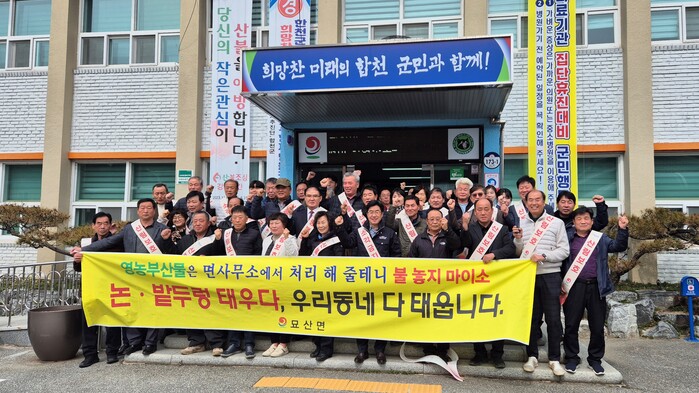 이날 캠페인은 지역주민들과 묘산면 이장단(회장 최병이) 등 40여명이 참여했다. 소각 산불없는 농촌만들기에 전 주민이 동참해 산불로 인한 주민들의 인명과 재산피해를 최소화하기 위해 마련됐다.
