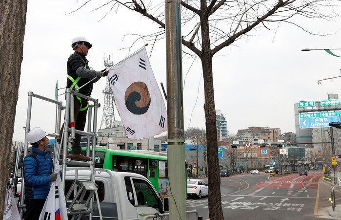 | ▲ 지난해 3‧1절 맞이 진관사 태극기 게양하는 모습. (사진=은평구청 제공) |