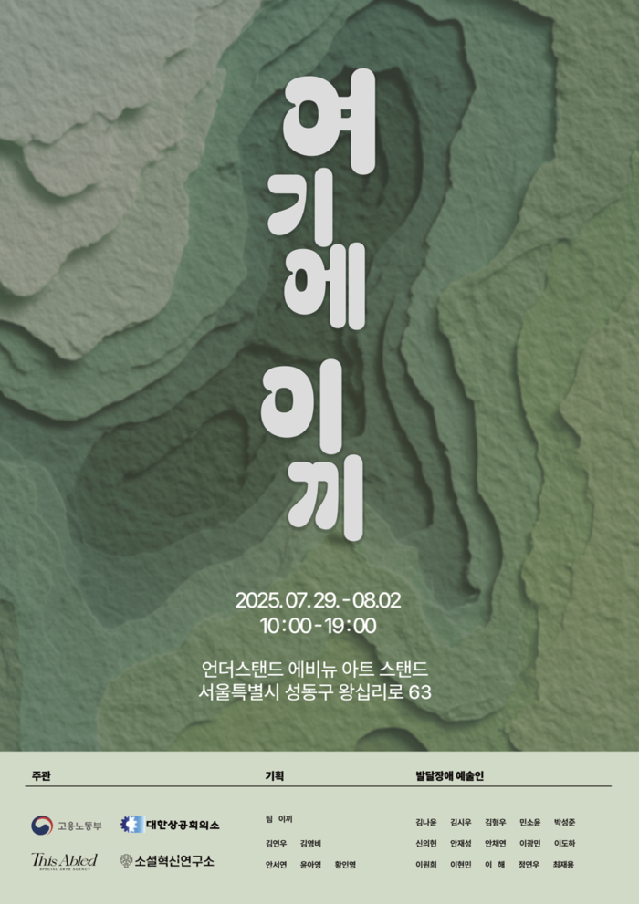 전시 제목 ‘여기에 이끼’는 천천히, 그리고 끈질기게 자신의 자리를 넓혀가는 이끼의 속성과 발달장애 예술인들의 창작 여정을 겹쳐낸 은유다. 이번 전시에는 100호에 달하는 대형 회화부터 작은 캔버스 드로잉까지, 총 30여 점의 신작이 전시된다. 이 작품들은 자연, 방, 감정, 가족, 상상 등 다양한 주제를 다루며, 작업 방식 또한 오일파스텔, 마커펜, 아크릴 등 작가가 직접 선택한 재료를 통해 개별화된 감각을 표현한다.
