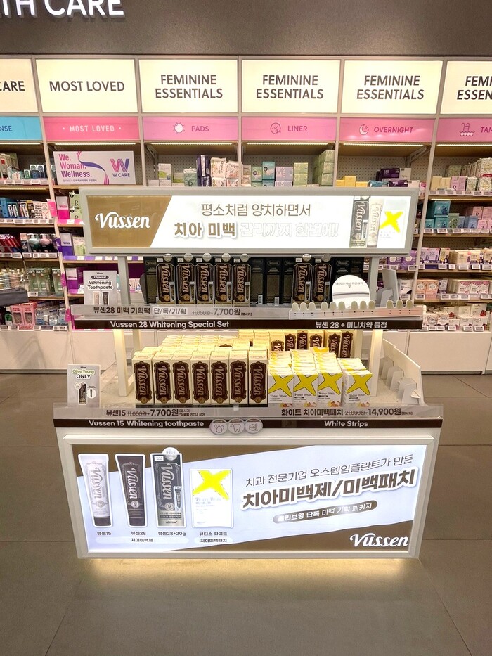 | ▲ 올리브영 매장에 진열된 오스템파마 뷰센 미백제품(사진=오스템파마 제공) |