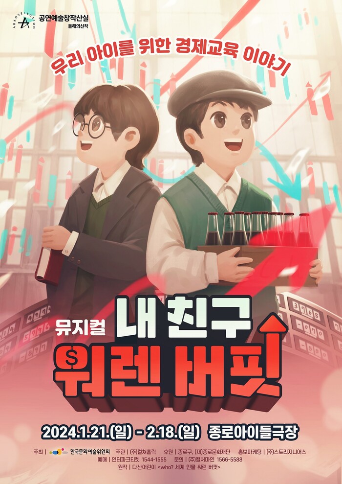 [시민일보 = 이대우 기자] 서울 종로구(구청장 정문헌)가 오는 18일까지 종로 아이들극장(성균관로 91 올림픽기념국민생활관 신관)에서 어린이를 위한 경제교육 뮤지컬 ‘내 친구 워렌 버핏’을 선보인다.