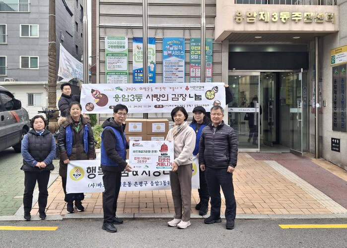 [시민일보 = 이대우 기자] 은평구(구청장 김미경) 응암3동은 지난 20일 바르게살기운동 응암3동 위원회 주관으로 2025 희망온돌 따뜻한 겨울나기 사업 일환으로 ‘사랑의 김장 나눔’ 행사를 개최했다고 밝혔다.