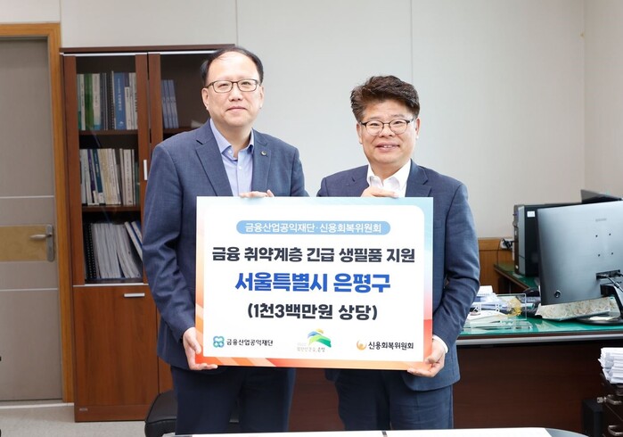 [시민일보 = 이대우 기자] 은평구(구청장 김미경)는 지난 23일 신용회복위원회 서울·강원지역본부와 금융 취약계층 긴급 생필품 지원 전달식을 개최했다고 밝혔다.
