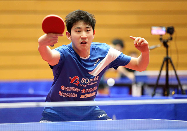 | ▲ ‘2022년 탁구 국가대표 선발전’에서 국가대표로 선발된 ‘보람할렐루야탁구단’ 김동현 선수 경기 사진.(사진제공=보람상조) |