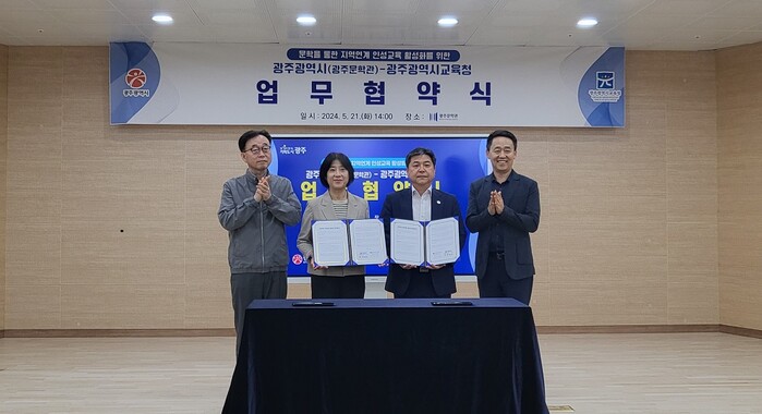 [광주=정찬남 기자] 광주문학관과 광주광역시교육청은 21일 광주문학관에서 ‘문학을 통한 지역 연계 인성교육 활성화를 위한 업무협약’을 체결했다.