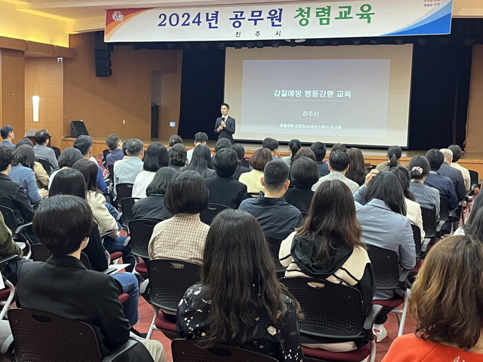 진주시는 30일 시청 시민홀에서 6급 공무원을 대상으로 청렴교육을 실시했다.