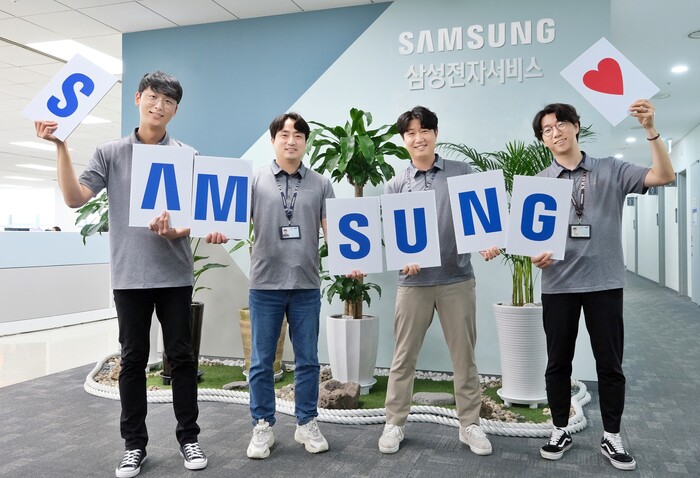| ▲ 삼성전자서비스 임직원들이 2024 국가고객만족도(NCSI) 1위 선정 기념 촬영을 하고 있다. (사진=삼성전자서비스 제공) |