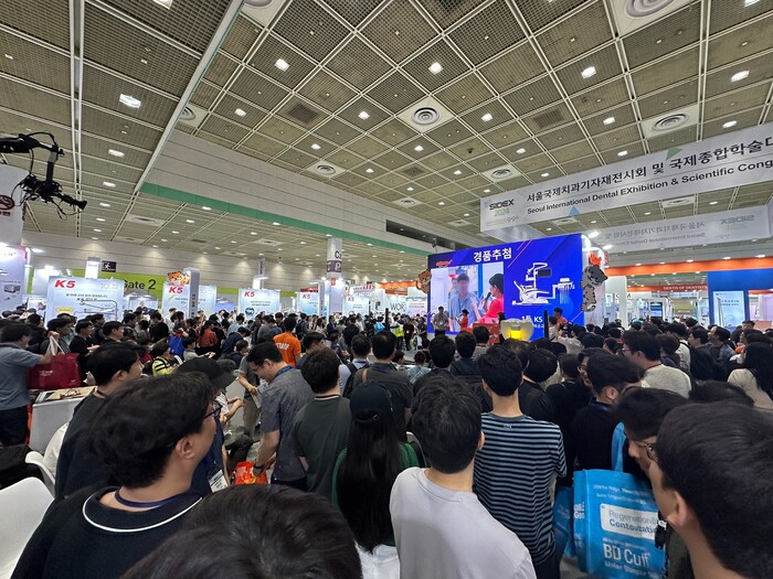 | ▲ SIDEX 2024 경품이벤트가 진행 중인 모습.(사진= 오스템임플란트 제공) |