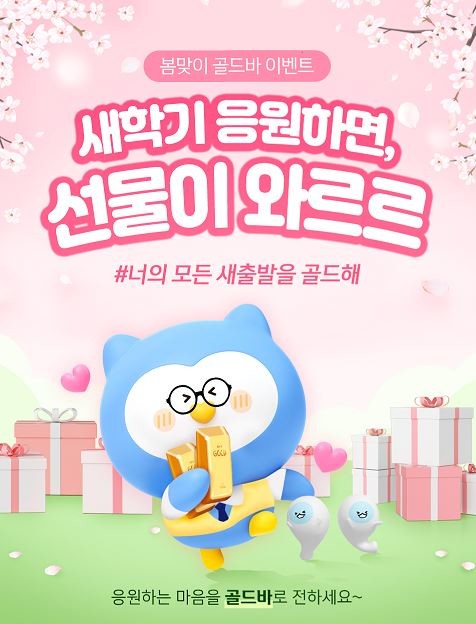 [시민일보 = 이대우 기자] 신한은행(은행장 정상혁)은 입학 시즌을 맞아 ‘새학기 응원하면, 선물이 와르르’ 봄맞이 골드바 이벤트를 시행한다고 27일 밝혔다.