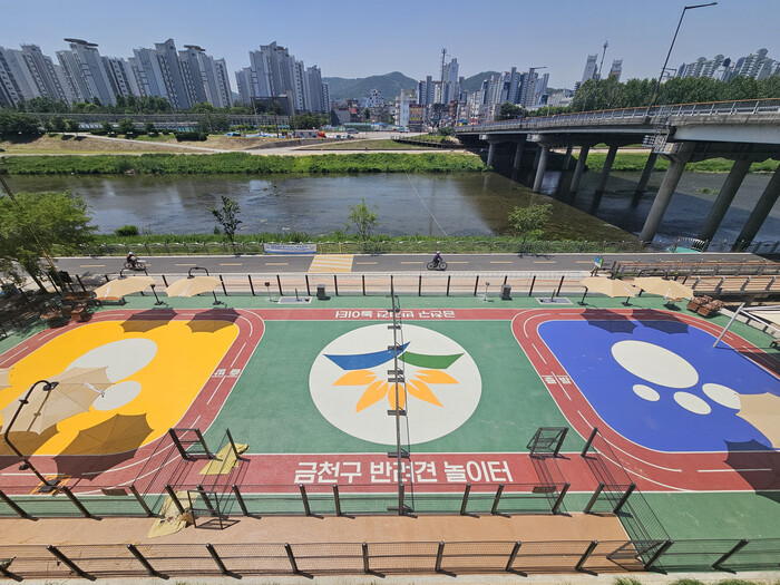 반려견놀이터는 지난 5월 안양천 유휴공간(시흥동 784-21)에 757㎡(229평) 규모로 조성됐다. 반려견들이 자유롭게 뛰어놀 수 있는 놀이 공간과 반려인 쉼터 등의 시설을 갖추고 있다.