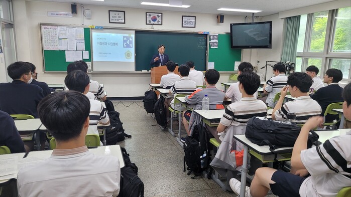 [시민일보 = 이대우 기자] 서울시의회 이용균 의원(더불어민주당, 강북구3)이 최근 선덕고등학교(교장 배경철)를 방문하여 “저출생과 시민행복”을 주제로 학생대상 특강을 개최하였다.