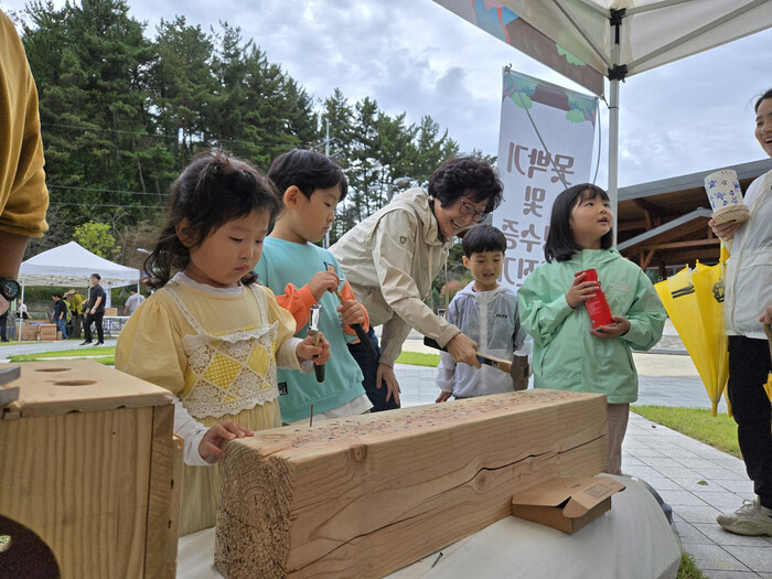 행사 당일에는 아이들의 웃음과 체험을 즐기는 가족들의 손길이 끊이지 않았다. ‘목재 무전력 놀이기구’ 20종이 설치돼 아이들이 나무의 따뜻한 감촉을 느끼며, 자유롭게 놀 수 있었고, ▲한지 무드등 ▲나무 명태 ▲동물 키링 만들기 등 다양한 프로그램이 진행돼 가족들이 함께 나란히 앉아 자신만의 작품을 완성했다.