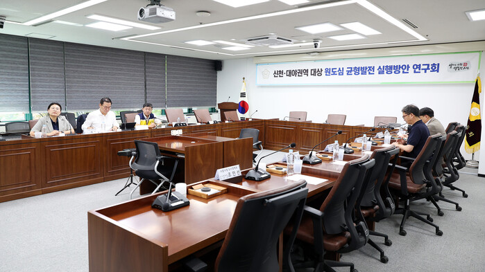 | ▲ 시흥시의회 의원 연구단체신천·대야권역 대상 시흥시 원도심 균형발전 실행방안 연구회가 지난 7월 25일 개최된 제4차 연구활동을 진행하고 있다 /사진제공=시흥시의회 |