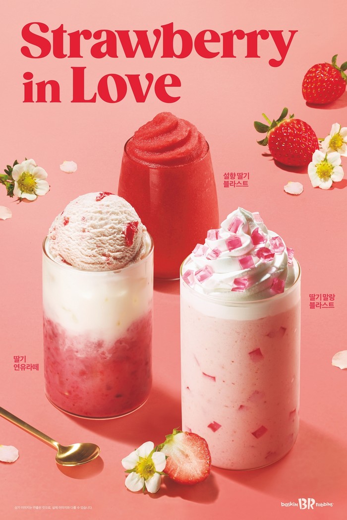 배스킨라빈스 ‘딸기 연유 라떼’는 달콤한 연유와 딸기 과육이 들어 있는 라떼에 ‘베리베리 스트로베리’ 아이스크림을 토핑해 상큼함과 부드러움을 한 잔 가득 담은 제품이다. ‘설향 딸기 블라스트’는 논산 설향 딸기로 만들어 신선하고 청량한 딸기의 풍미를 극대화한 아이스 음료로, 꾸준한 인기를 얻고 있다.