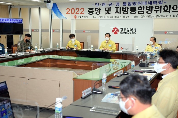 [광주=정찬남 기자] 광주광역시는 22일 시청 충무상황실에서 2022년 중앙 통합방위회의 및 시 통합방위협의회를 병행 개최했다.