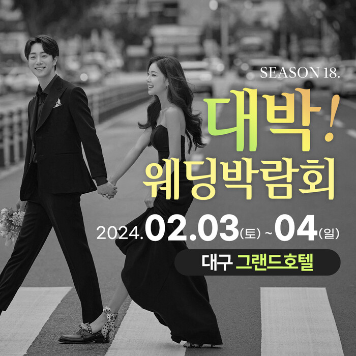 [시민일보 = 이창훈 기자] 대구 대박웨딩박람회 시즌18이 오는 2월3일부터 4일까지 대구그랜드호텔에서 진행된다.