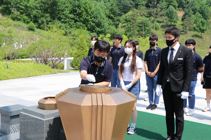 이어 학생들은 국립묘지인 호국원을 찾아 국가유공자와 유족의 자긍심을 고취하고 나라 사랑 정신을 키우는 특별한 시간을 가졌다.