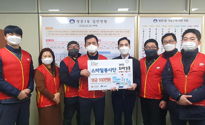[시민일보 = 여영준 기자] 서울 도봉구(구청장 이동진) 쌍문3동이 최근 ‘도봉우체국 스마일봉사단(쌍문3동 노해로 150)’으로부터 따뜻한 겨울나기 성금 100만원을 전달받았다.