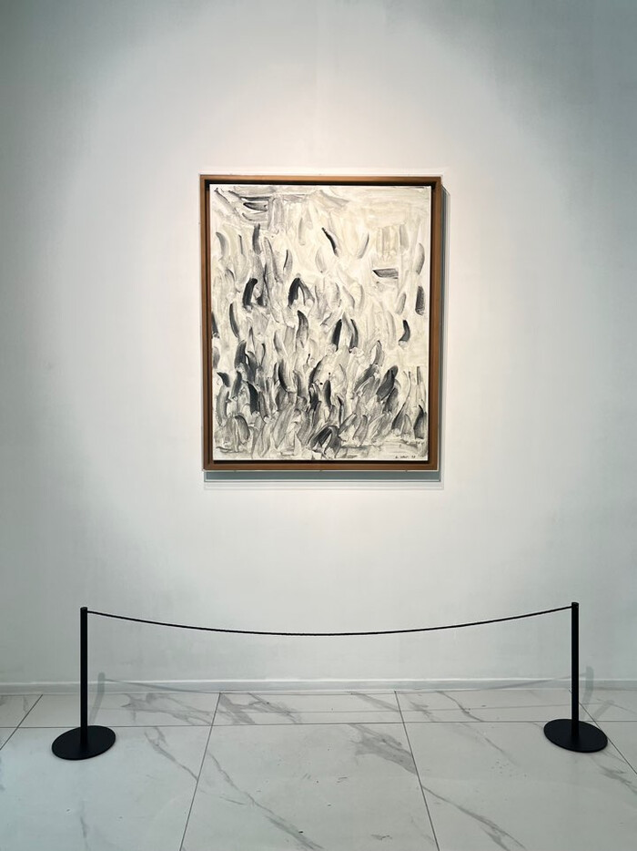 전시작 〈With Winds〉는 돌가루 안료를 사용한 거침없는 붓질로 바람의 흐름과 자연의 에너지를 담았다. 캔버스의 여백과 붓 자국 사이의 긴장감이 조형적 울림을 자아내며, 관람객에게 깊은 사색의 시간을 제공한다.