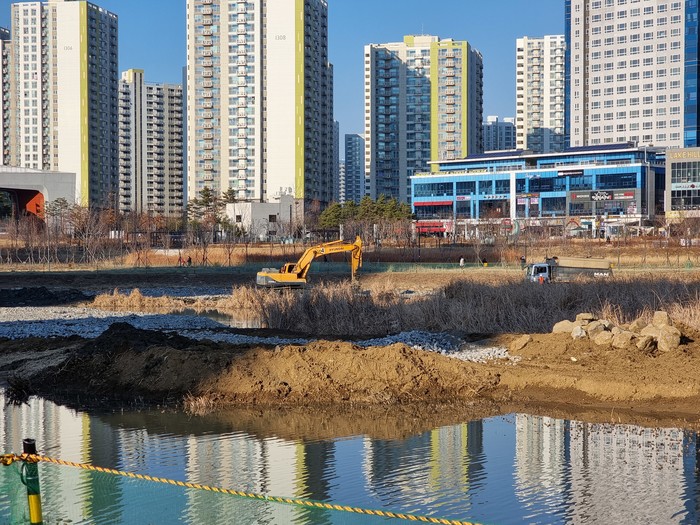 | ▲ 수질개선 및 정비공사가 진행되고 있는 망월천 모습. (사진제공=하남시의회) |