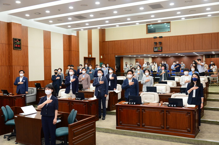 이미연 의장은 개회사에서 “이번 수해로 피해를 입어 상심이 큰 구민분들께 추석 전 재난지원금이 지급 될 수 있도록, 선배동료 의원님들께서는 추가경정예산안 심사에 만전을 기해주시길 당부드린다”고 말했다.