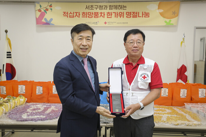 13일 구에 따르면 이날 행사는 구청과 대한적십자사 서초지구협의회의 지원으로 마련됐으며, 한가위를 맞아 추석 음식 3종(과일, 송편, 갈비탕)을 적십자 결연세대 및 취약계층 110세대에 전달했다.