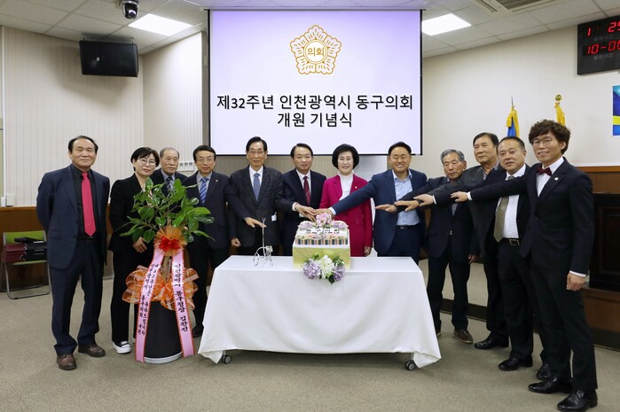 [인천=문찬식 기자] 인천 동구의회가 14일 의장실에서 '인천 동구의회 개원 32주년 기념행사'를 개최했다.