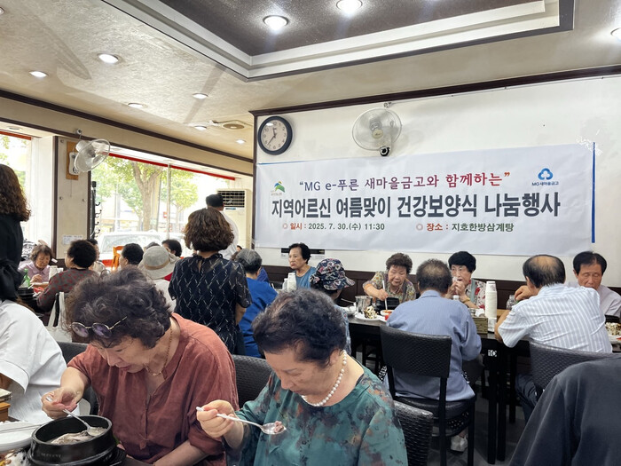 이번 행사는 MG e-푸른새마을금고의 후원으로 지호한방삼계탕에서 진행됐으며, 관내 경로당 네 곳의 어르신과 자원봉사자를 포함해 총 70명을 대상으로 삼계탕 보양식이 제공됐다.