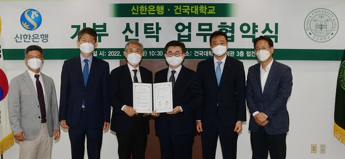 신한은행 관계자는 “건국대학교와의 업무협약을 계기로 누구나 쉽게 신탁으로 기부에 참여할 수 있다는 걸 알게 되길 기대한다”며 “앞으로도 신탁을 활용한 기부문화가 확산될 수 있도록 적극 지원해 ESG 경영의 선두주자로서의 입지를 공고히 하겠다”고 말했다.