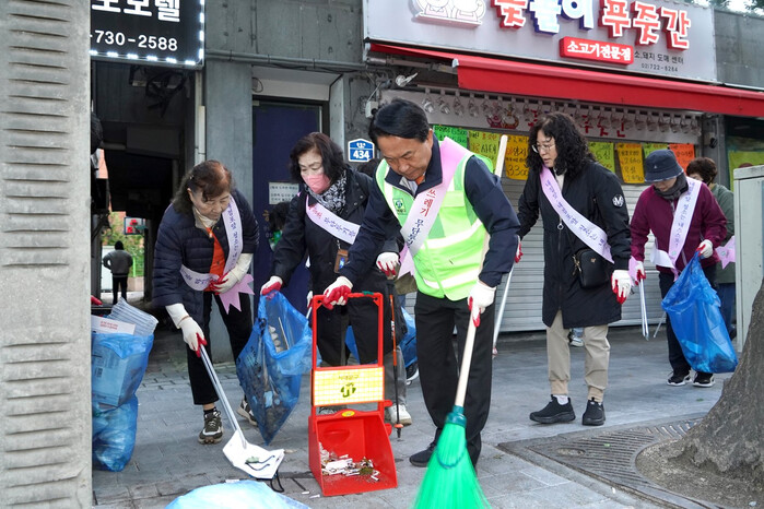 | ▲ 주민들과 함께 ‘10월 클린데이 청소행사’에 참여한 이성헌 구청장. (사진=서대문구청 제공) |