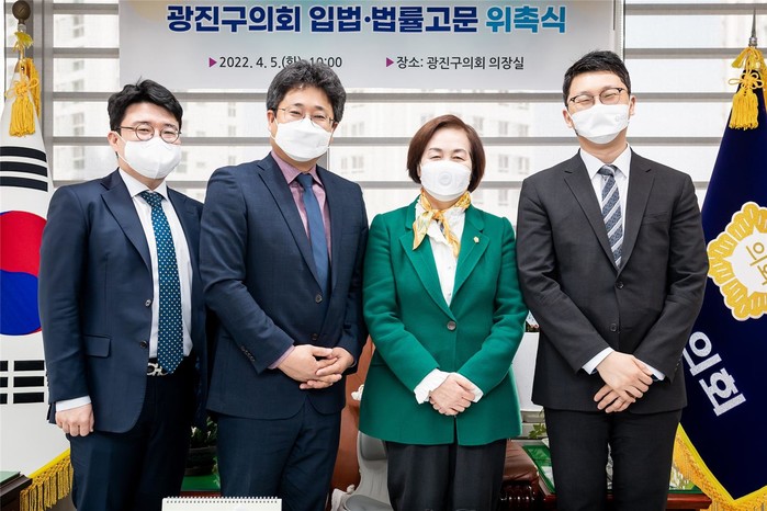 이에 김대진 변호사, 윤영훈 변호사, 황성현 변호사가 고문으로 위촉됐으며, 이들은 2022년 4월1일부터 2년 동안 '서울특별시 광진구의회 입법·법률 고문 운영 조례'에 따라 자치법규의 제·개정이나 의회운영 및 의안 심사·처리에 관한 사안을 자문하게 된다.