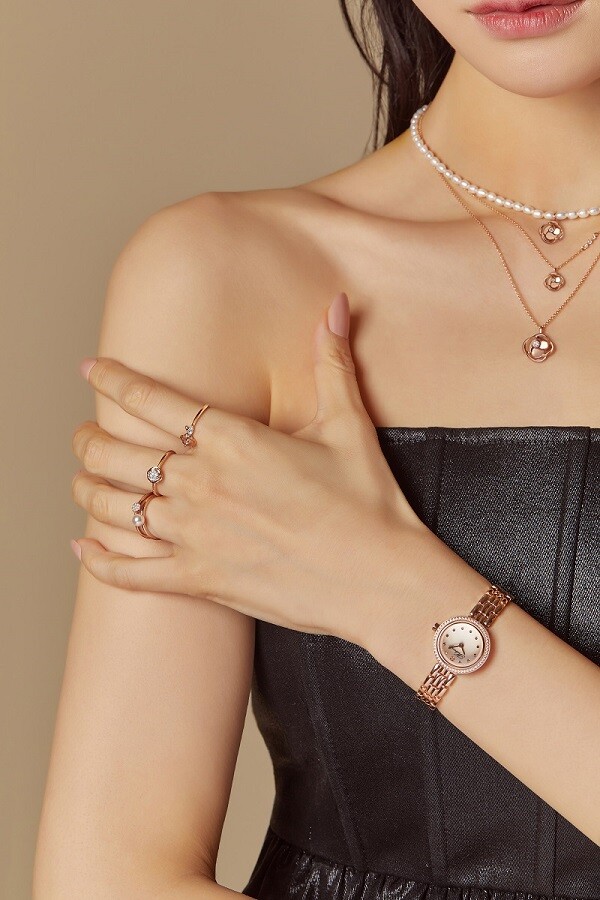 메트로시티의 시그니처 주얼리 ‘라 로사’ 컬렉션은 풍성한 꽃잎 사이로 스톤을 세팅해, 스톤이 마치 꽃잎들 중심에 떠 있는 모습처럼 형상화해 변치 않는 아름다움과 고급스러움을 표현했다. 우아하면서도 단아한 무드를 자아내는 천연 담수 진주가 제품 곳곳의 포인트로 더해져 누구에게나 무난하게 잘 어울려 시즌 리스하고 데일리 하게 연출하기 좋다.