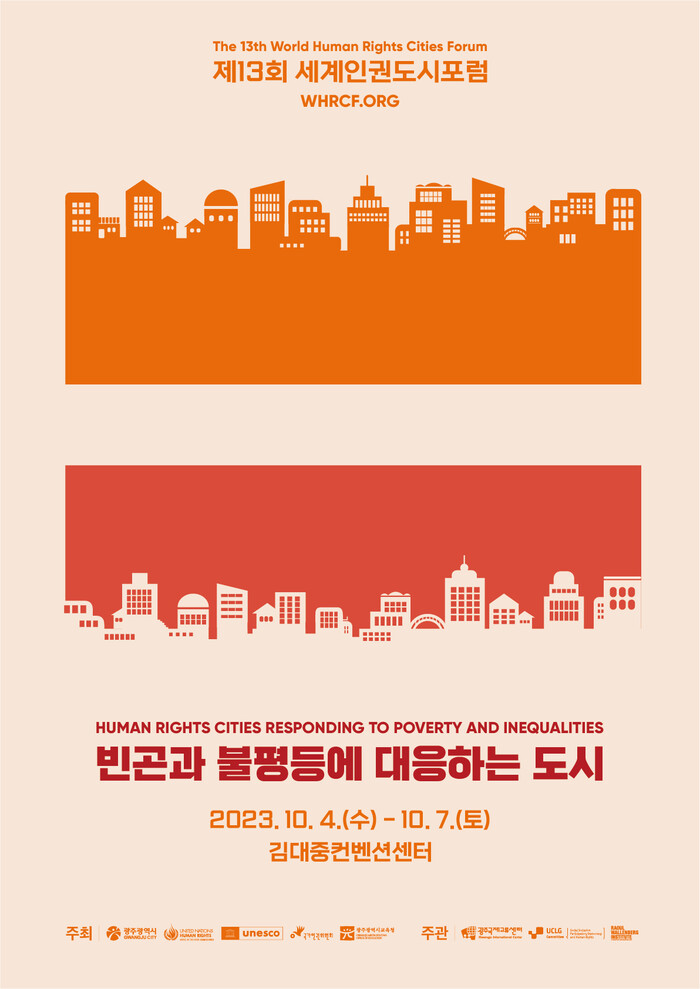올해 13회째를 맞은 세계인권도시포럼은 세계 대표 인권기구인 UN 인권최고대표사무소와 유네스코 본부가 3년 연속 공동 주최기관으로 참여한다. 올해 주제는 국제기구, 국내외 전문가, 시민 선호도 조사를 통해 ‘빈곤과 불평등에 대응하는 도시’를 선정했다.