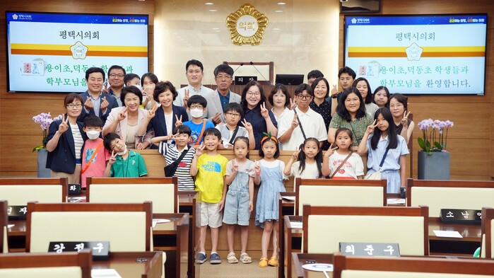 [평택=오왕석 기자] 평택시의회(의장 유승영)는 31일 시의회 2층 본회의장에서 용이초등학교 학생과 학부모 20여 명을 대상으로 의회 청사 견학을 진행했다.