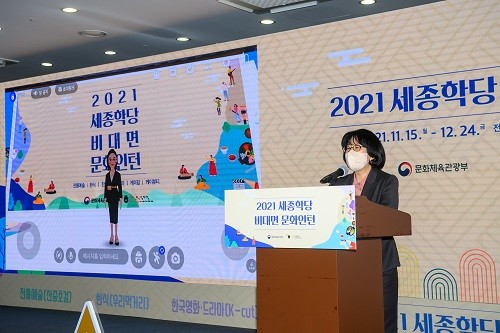 이번 최종 발표회는 ▲비대면 문화인턴 전통예술팀의 축하공연 ▲활동 기록 영상 상영 ▲신남방·신북방 지역 세종학당 학생과 문화인턴이 함께 준비한 온라인 플래시몹 제작 발표 ▲문화 전문가 자문 ▲확장 가상세계(메타버스) 활용 참가자 기념촬영 및 한국문화 OX퀴즈 이벤트까지 다채로운 프로그램이 진행됐다.