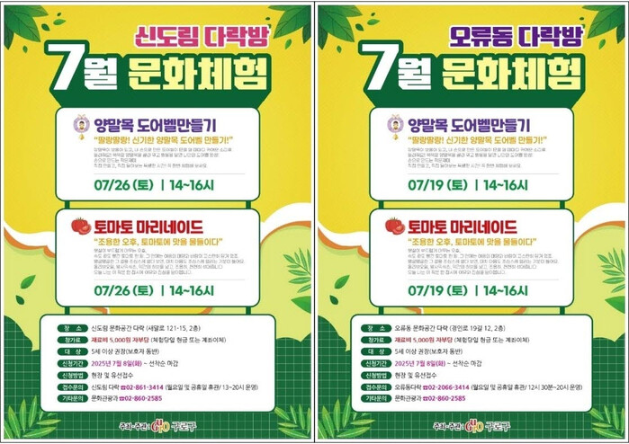 | ▲ 신도림·오류동 다락(多樂) 7월 프로그램 홍보 안내문. (사진=구로구청 제공) |