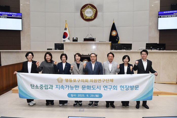 [시민일보 = 여영준 기자] 서울 영등포구의회 의원연구단체 '탄소중립과 지속가능한 문화도시 연구회'(이하 '연구회')는 지난 29일 오전 10시 용인시의회를 현장방문하여 간담회를 개최했다.