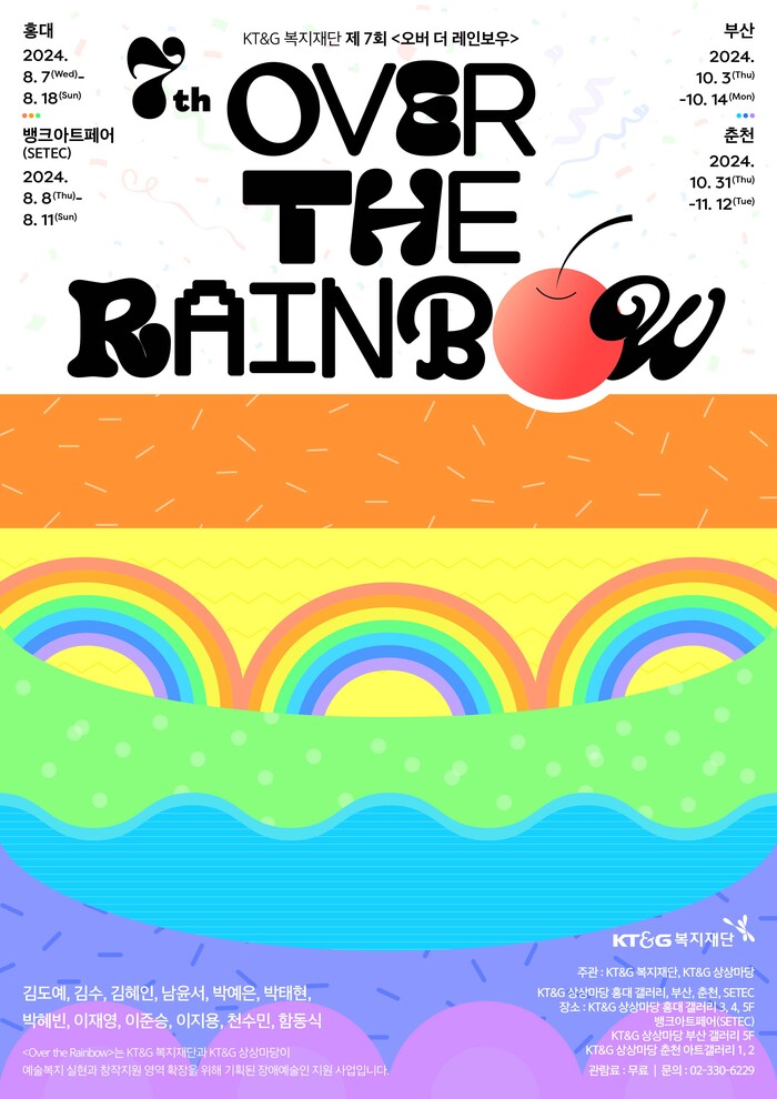 [시민일보 = 여영준 기자] KT&G는 장애예술인 기획전 ‘제7회 오버 더 레인보우(Over the Rainbow)’를 오는 18일까지 KT&G 상상마당 홍대 갤러리에서 개최한다고 7일 밝혔다.