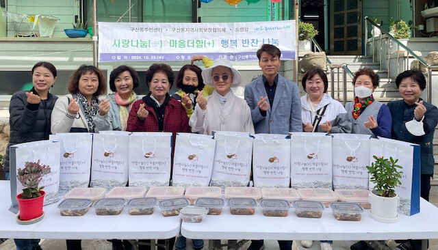 박재균 구산동장은 ”정성껏 밑반찬을 준비해 나눔에 앞장서 준 구산동 지역사회보장협의체 위원과 도명암에 감사하다“며 "항상 이웃을 살피고 주변에 사랑을 나누는 따뜻한 구산동이 되도록 최선을 다하겠다”고 말했다.