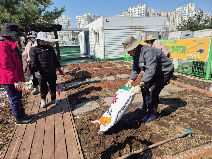 | ▲ 공유텃밭 가꾸는 모습. (사진=성동구청 제공) |