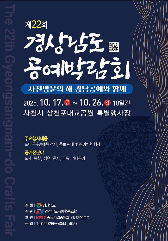 특히 올해는 ‘2025년 사천 방문의 해’를 기념하여 ‘사천방문의 해, 경남공예와 함께’라는 주제로 개최된다.