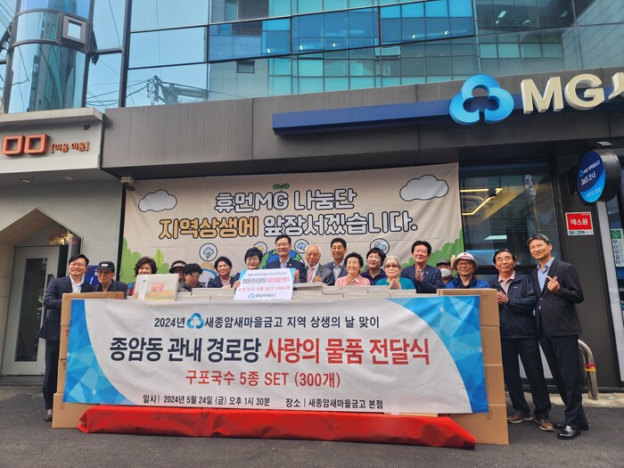 새종암새마을금고 김성희 이사장은 “5월 어버이날, 경로당 어르신이 필요한 물품을 지원하여 함께 살아가는 따뜻한 종암동 상생에 도움이 되도록 계속 노력하겠다”라고 말했다.