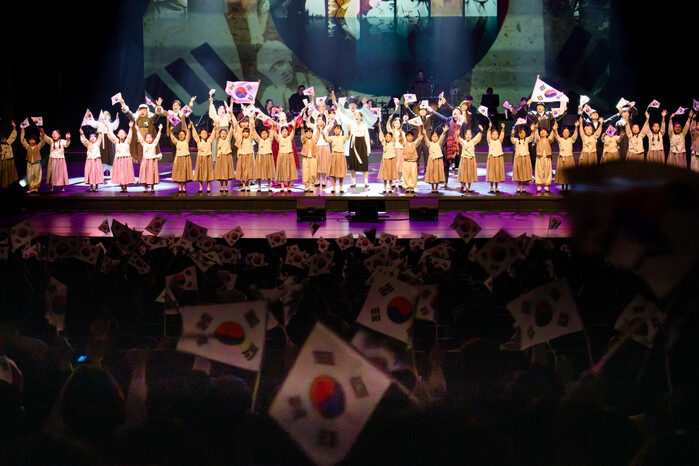 관객들은 공연 중간중간 태극기를 힘차게 흔들며 함께 만세 삼창을 하고, 아리랑을 부르는 등 공연에 심취해 마치 그 시절 독립운동을 외치던 현장을 떠오르게 했다.