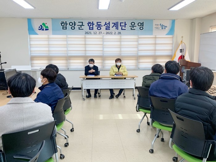 함양군은 12월 27일부터 내년 2월 말까지 건설경기 활성화와 기술직 공무원 역량강화, 예산절감 효과 등을 위해 합동설계단을 운영한다.