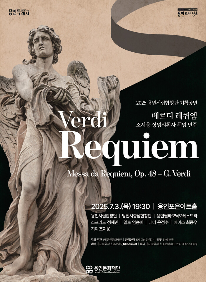 [용인=오왕석 기자] 용인문화재단(이사장 이상일)은 2025 용인시립합창단 기획공연 ’Verdi Requiem’을 오는 7월 3일(목) 오후 7시 30분, 용인포은아트홀에서 개최한다.
