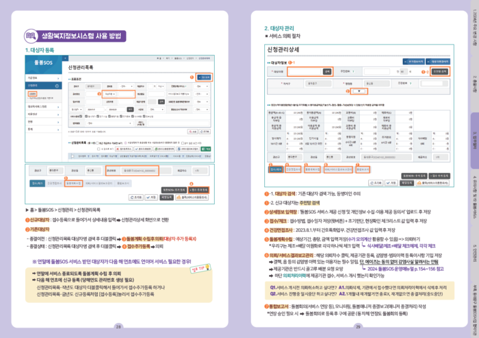 해당 책자는 돌봄SOS 운영 매뉴얼의 핵심 내용과 함께 실무에 활용할 수 있는 ▲소득 조사 방법 ▲전산시스템 사용방법 ▲안전 관리법 ▲서비스별 유의사항 및 유사 서비스 내용이 담겨있다.