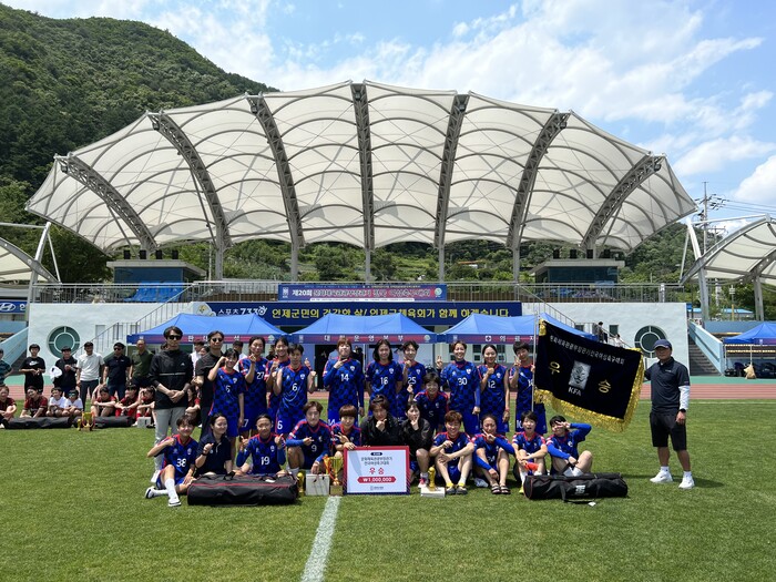 | ▲ 제20회 문화체육관광부장관기 전국여성축구대회에서 우승한 ‘송파구여성축구단’ 이 기념촬영을 하고 있다. (사진=송파구청 제공) |